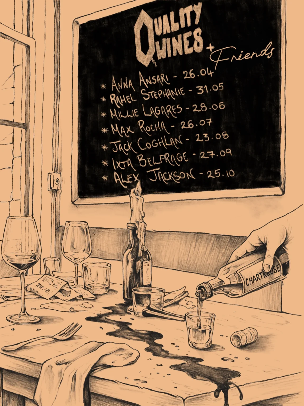 Wines by the glass change daily and bottles can be purchased from the shelves. The wines are carefully selected and poured by wine team Marcos Spyrou and Darragh Monnin.